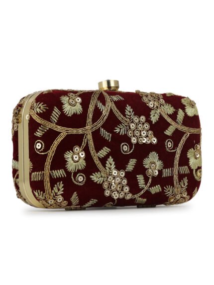 Maroon Embroidered Box Clutch For Girls and womens