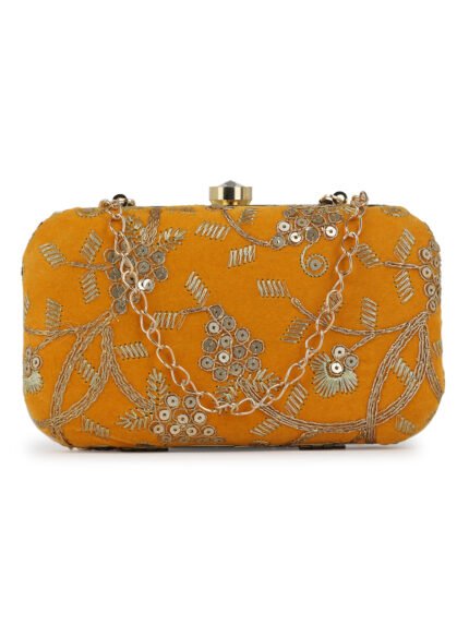 Mustard Embroidered Box Clutch For Girls and womens