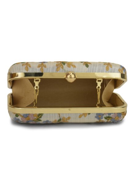 White & Gold-Toned Embroidered Party Box Clutch For Girls and Womens For Girls and womens