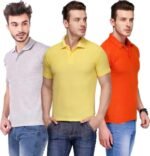 Men’s Polo Neck Short Sleeve Casual Tshirt Combo of Orange, Grey, Yellow colors (Pack of 3)