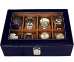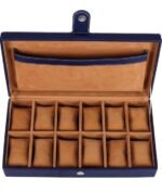 Presents Luxury 12 Slot Watch Box for Men & Women Lockable Leather Watch Organizer with Glass Lid, Soft Velvet Cushions, Premium Display & Storage Case for Watches (Blue)