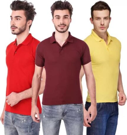 Men’s Polo Neck Short Sleeve Casual Tshirt Combo of Red, Maroon, Yellow colors (Pack of 3)